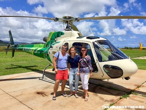 De departe, experienta survolarii insulei cu elicopterul a fost highlight-ul experientelor de pe insula Kauai, cel putin pentru mine. Sunt trei companii care organizeaza calatorii cu elicopterul, noi am ales Safari Helicopters si nu am gresit. Oferta companiilor analizate este variata (200 usd – 300 usd pentru acelasi traseu) si in multe cazuri diferentele sunt nejustificate. Asa ca, atentie! 🙂 Elicopterele au amenajate doua randuri de scaune:  3 persoane in fata (aici este inclus si pilotul) si 4 persoane pe randul din spate (din care doar 2 au vizibilitate totala la geam). Am stat langa pilot in fata, avand locuri excelente pentru a surprinde toate peisajele. Pilotul nostru Paka ne-a oferit informatii detaliate despre locurile survolate.