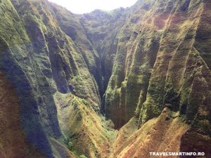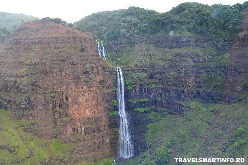 Intrarea in Canionul Waimea este spectaculoasa din directia din care intra elicopterul. Pilotul te poarta prin vaile canionului, te aduce fix in fata cascadei Waipo’o, in timp ce primesti toate informatiile istorice si geologice pe un fundal muzical asortat cu locul si peisajul.
