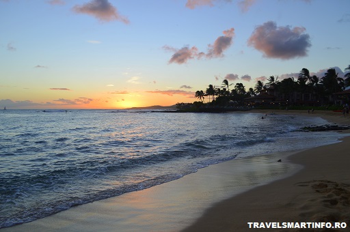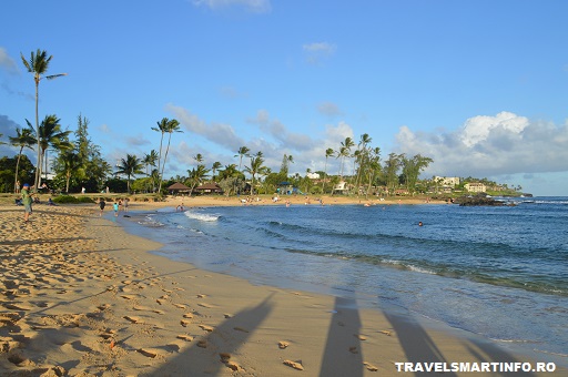 Poipu Beach, in partea de sud vest a insulei, este una dintre cele mai frumoase plaje din Kauai. Unde mai pui ca tot aici poti admira un apus superb, fiind una dintre putinele plaje pe coasta de vest accesibila cu masina. Cu multe optiuni de relaxare, inot, snorkeling, windsurf, plaja este foarte cautata in randul familiilor si cuplurilor cu copii. In micuta localitate Poipu optiunile de cazare sunt multiple si pentru toate buzunarele, fiind insirate de-a lungul plajei numeroase resorturi si condominiuri cu apartamente.
