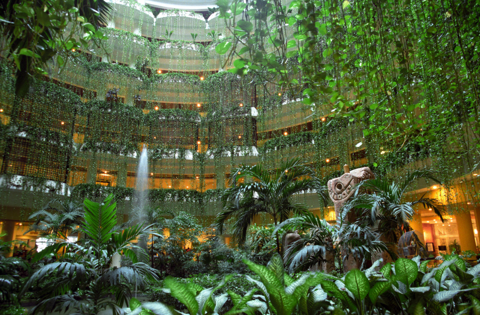 Cele 490 de camere sunt dispuse in forma de stea intr-o cladire de 6 etaje, al carei centru dispune de o curte interioara si o sala de primire a oaspetilor, decorata pitoresc cu plante tropicale si mici cascade de apa.