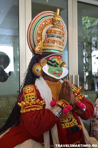 ‘Kathakali’ este unul dintre cele mai importante stiluri de arta coregrafica din cultura indiana. De ce arta coregrafica? Deoarece, acest dans, care la prima vedere pare static, spune o poveste si exprima un sentiment cu fiecare miscare facuta de actori. Evit sa folosesc cuvantul „dansatori” in favoarea celui de „actor” pentru ca asta si este show-ul: o piesa de teatru, amuzanta pe alocuri si care reda prin miscari stilizate, intamplari din viata de zi cu zi. Actorii, sunt in marea lor majoritate barbati si joaca in travesti.