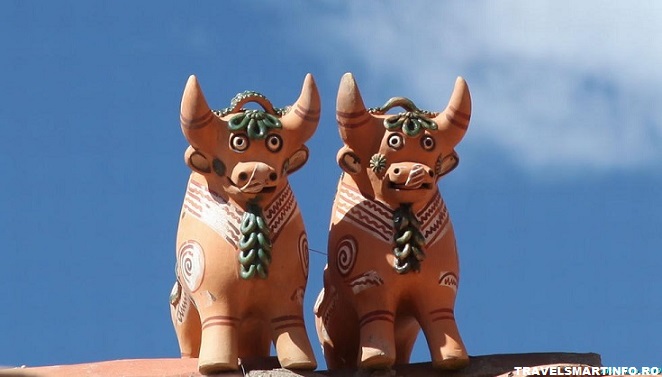 Inca de la intrare in Pucara si mai apoi pe acoperisuri si garduri sunt lipite statui de ceramica mai mari sau mici reprezentand tauri, renumitii „toritos de Pucara„.
