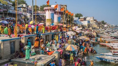Dupa micul dejun, transfer la aeroport pentru zborul catre Varanasi, unul dintre cele mai vechi orase locuite din lume si centrul spiritual suprem al Indiei. Seara, experienta autentica: plimbare cu ricsa prin stradutele inguste pana la Dashashwamedh Ghat, pentru a participa la ceremonia sacra Ganga Aarti – un ritual spectaculos de venerare a fluviului Gange, cu lumini, cantece si ofrande plutitoare. Cazare la hotel in Varanasi.